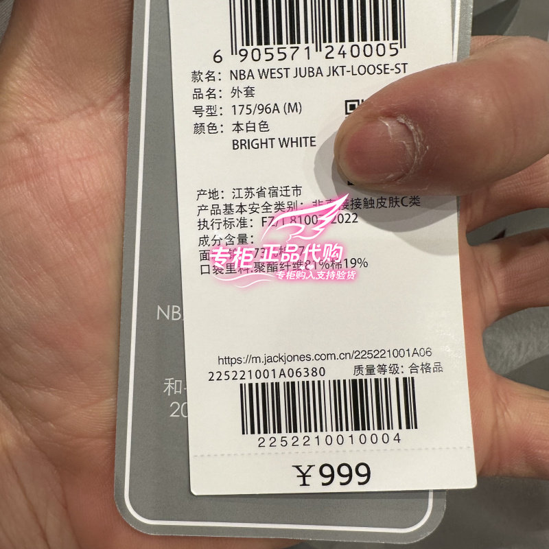 6905571240005 A06 杰克琼斯NBA联名logo印花夹克外套 225221001