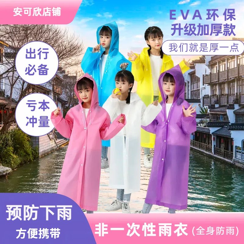 儿童雨衣小孩户外加厚长款 男童女童学生上学用雨披 防暴雨衣便携式