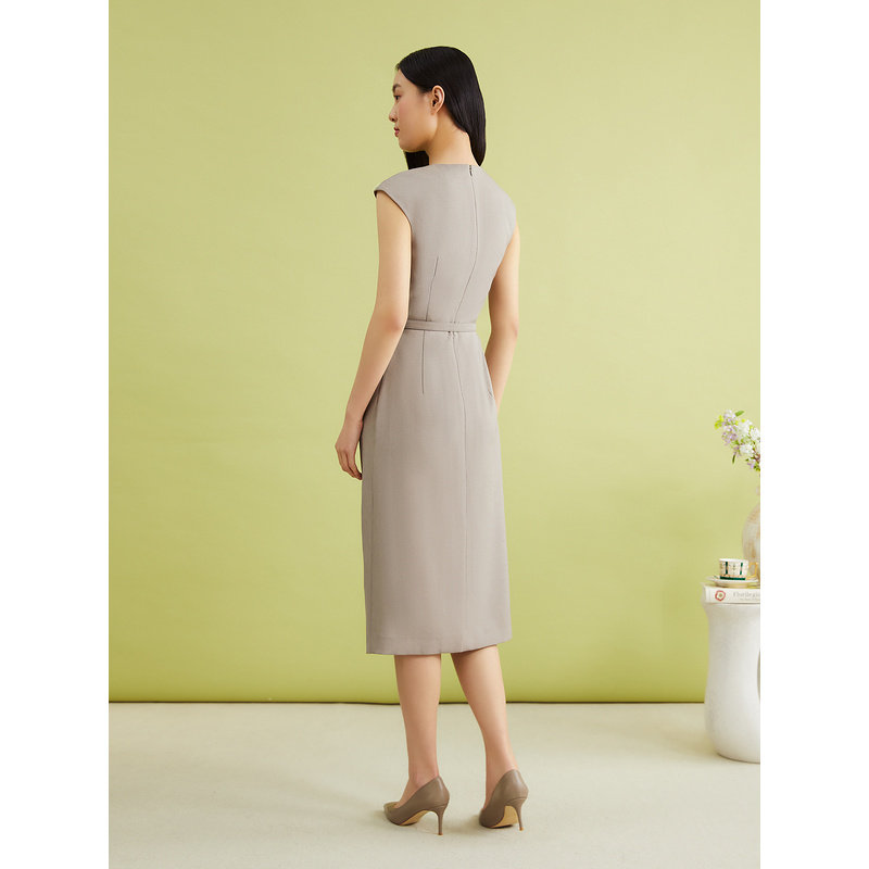 S型无袖 YINER音儿女装 优雅V领收褶修身 法式 气质连衣裙 夏季