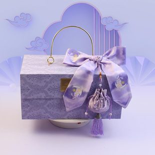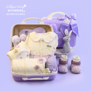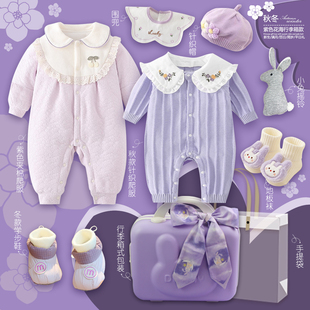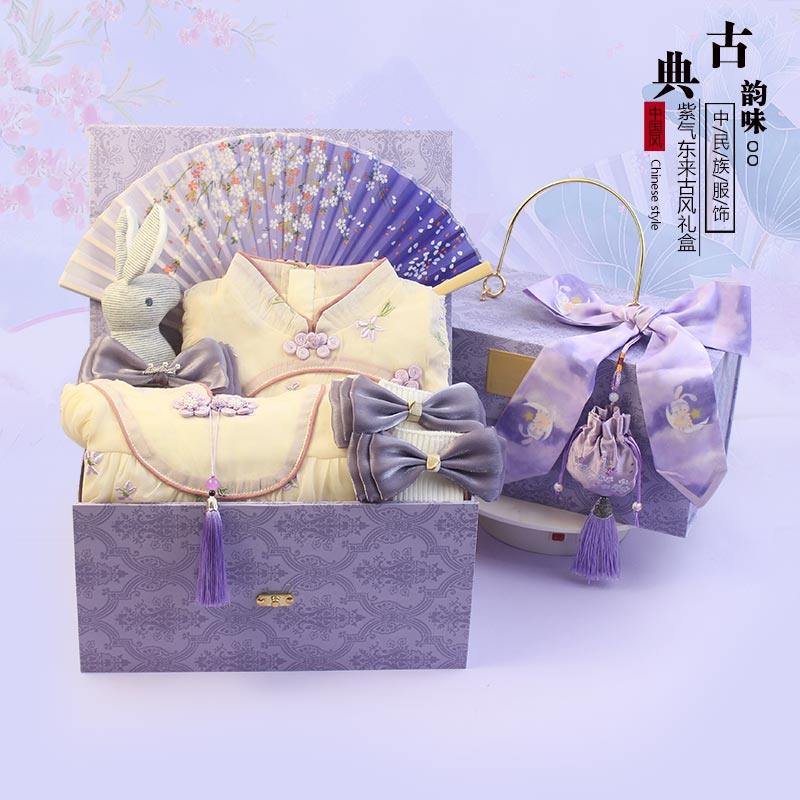 国风秋冬紫色婴儿汉服女宝宝古典满月百天周岁礼盒新生儿见面礼物