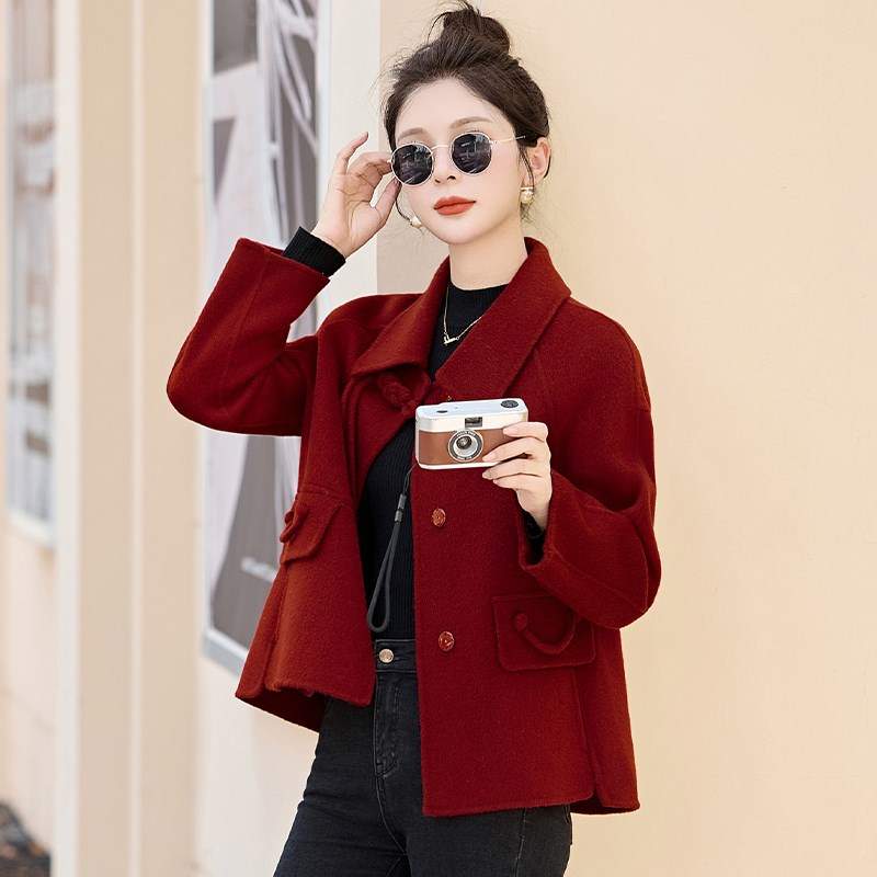 新款 2025冬季 秋水伊人优雅翻领毛呢外套 通勤大衣 100%绵羊毛