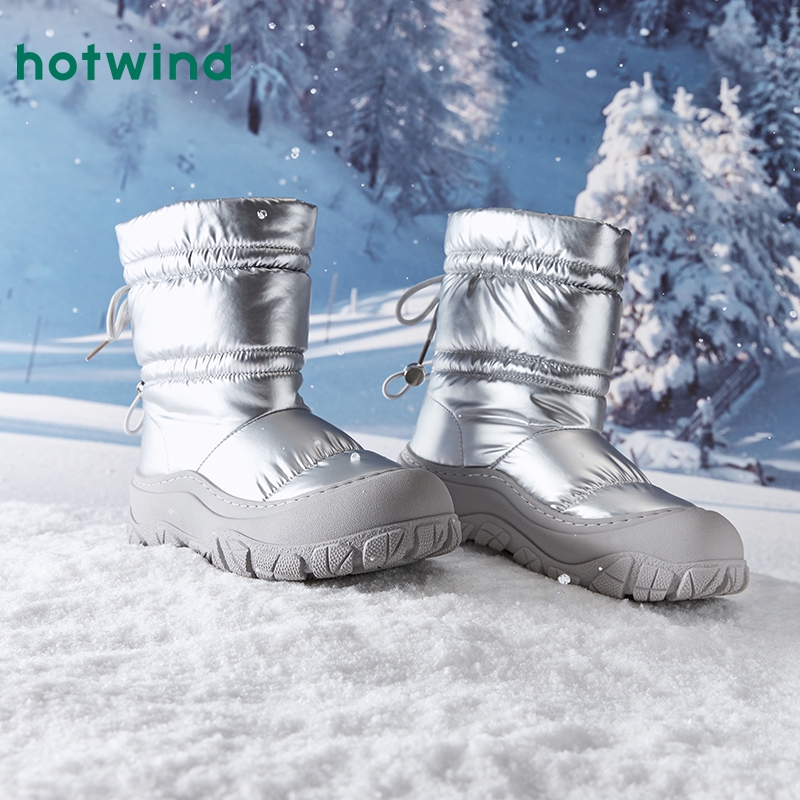 保暖户外舒适东北棉鞋 新款 中筒 2025年冬季 热风厚底银色雪地靴女款