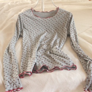 日常修身 居家小衫 T恤 胖子大码 莫代尔螺纹小碎花显瘦上衣 秋季 长袖