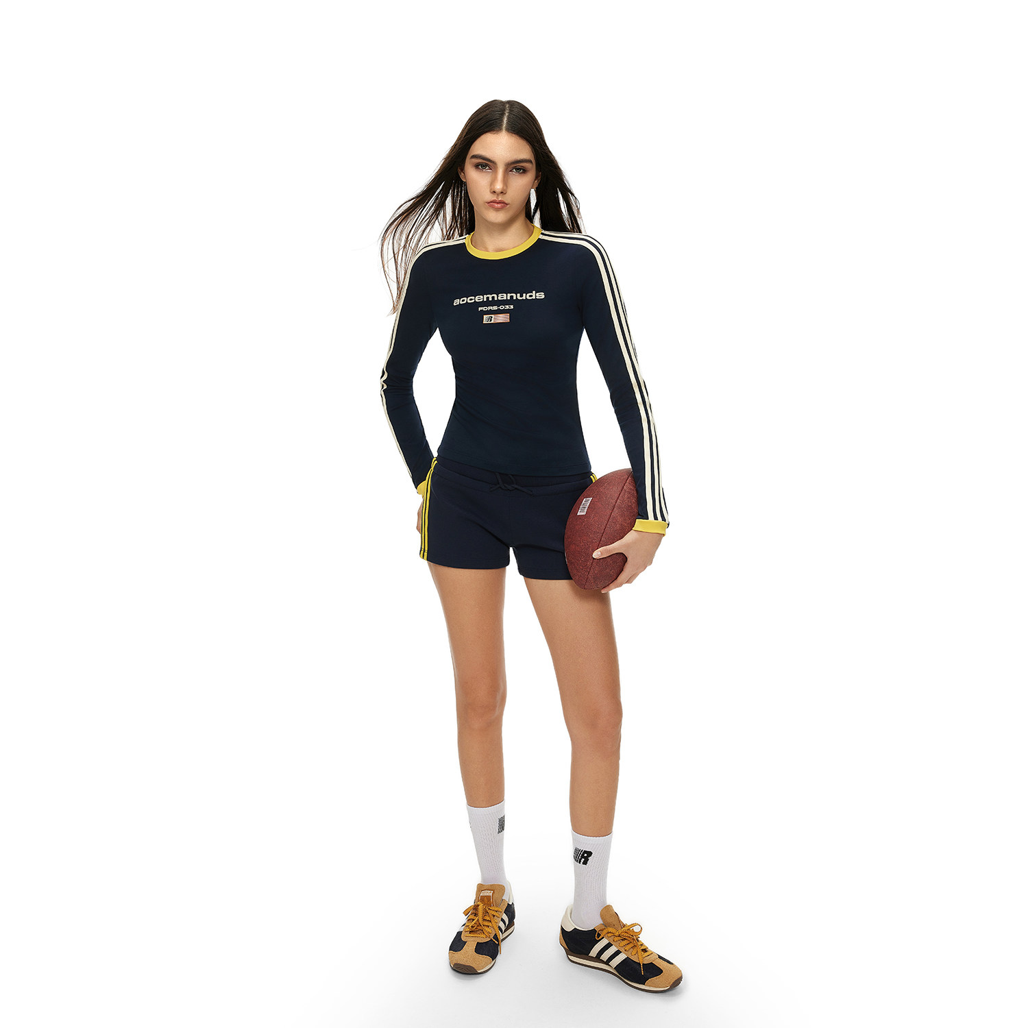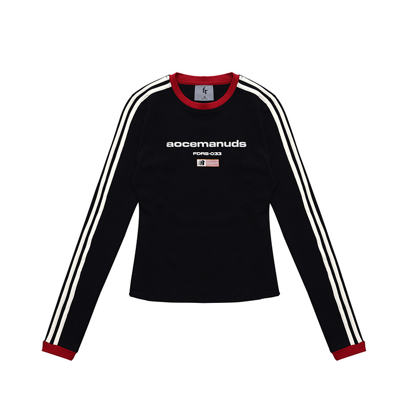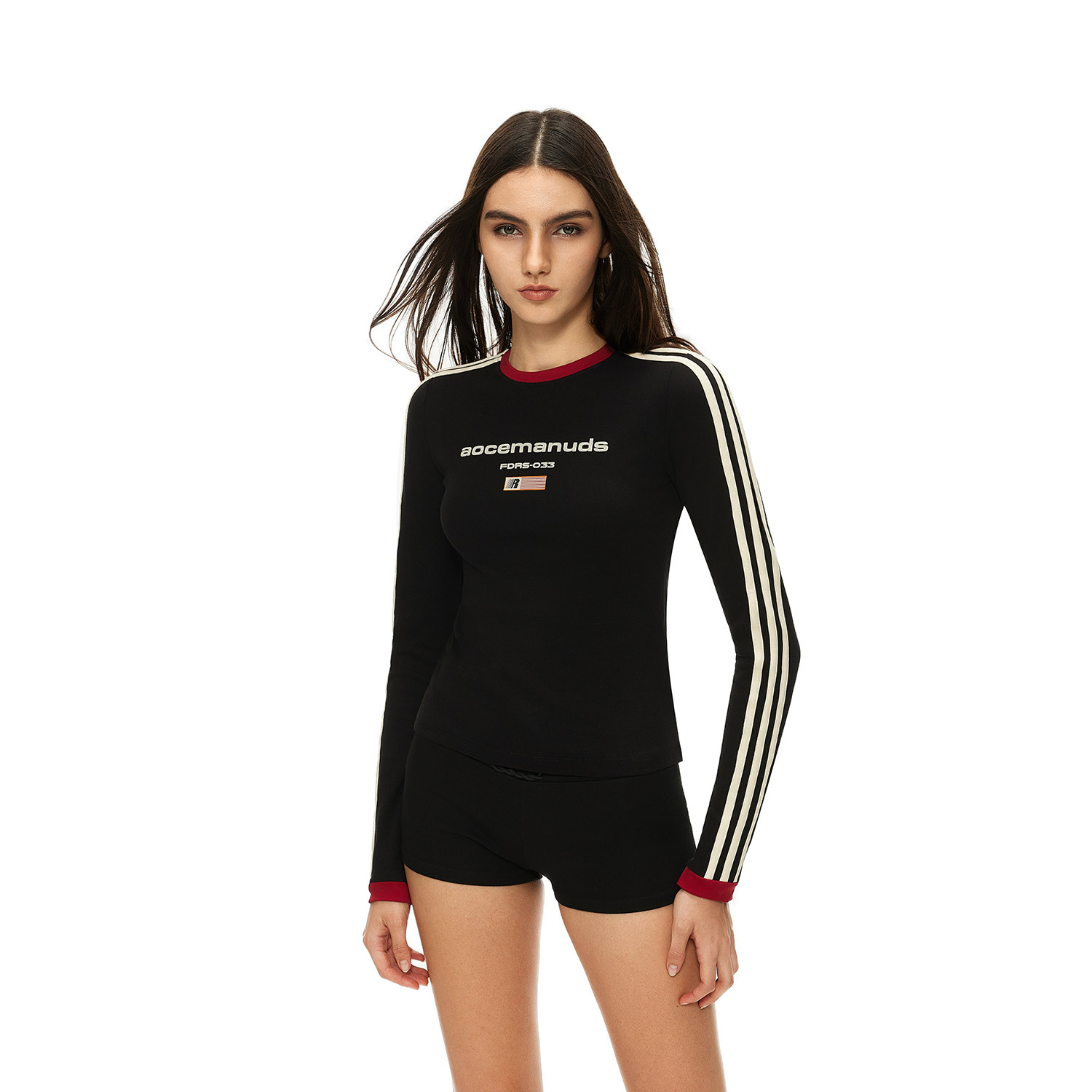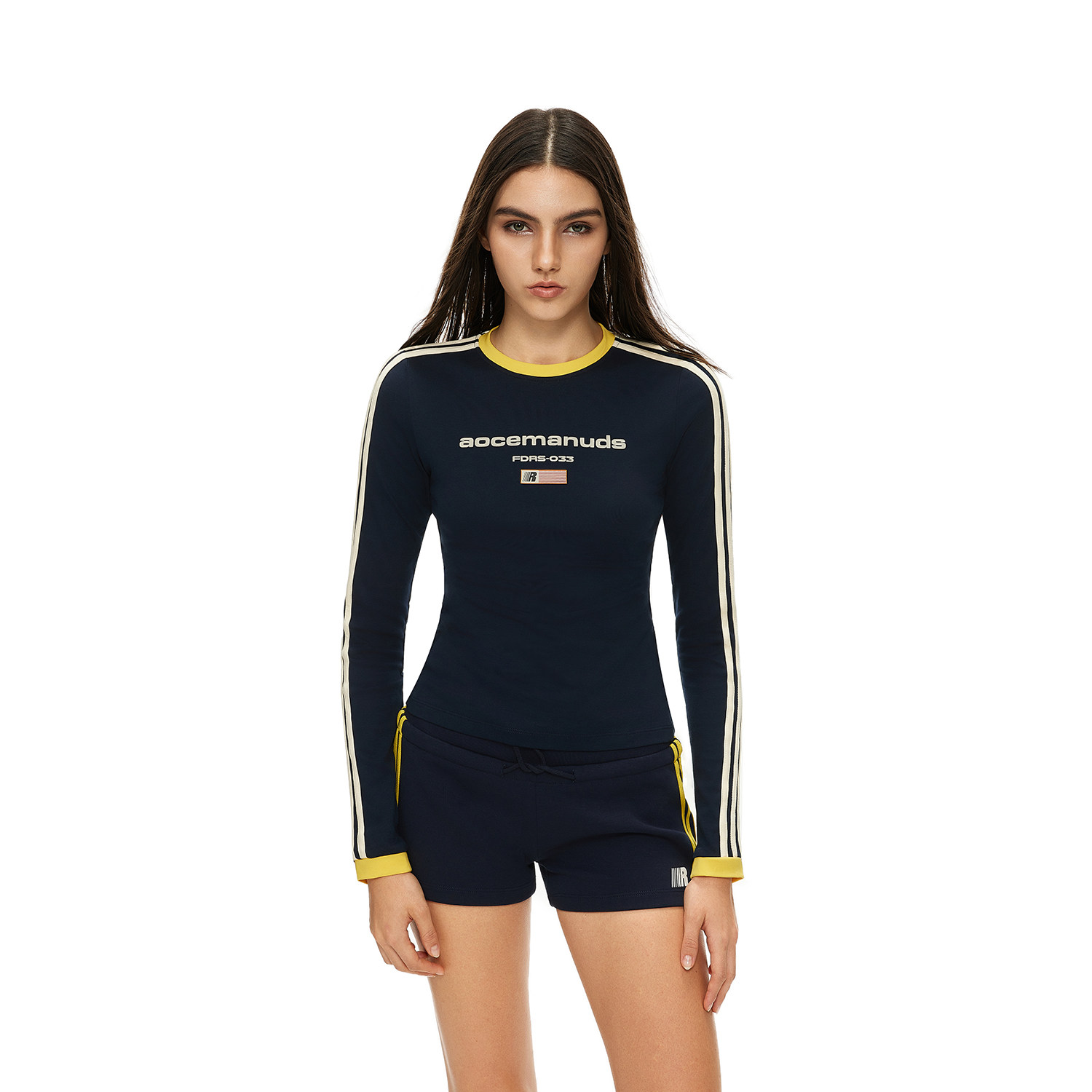 显瘦打底上衣 T恤女春秋辣妹运动修身 FDR官方店 旗帜织带撞色长袖