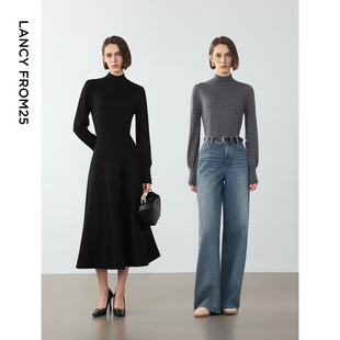 新款 2024年冬季 气质内搭新年 纯羊毛毛针织衫 朗姿可机洗复古灯笼袖