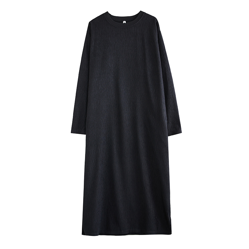 日系简约基础款 连衣裙暗纹肌理慵懒休闲长裙宽松显瘦裙黑色 长袖