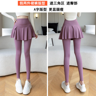 子 裙女跑步速干瑜伽裙裤 胖mm加肥大码 200斤高腰假两件运动健身裤
