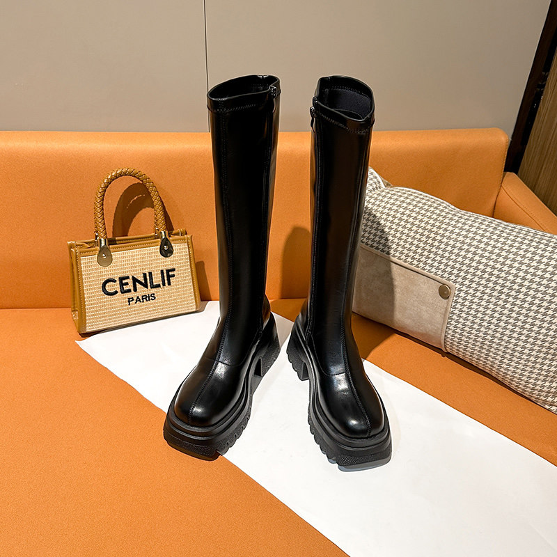 长筒靴女2025秋冬季 粗跟厚底中筒靴骑士靴粗腿显瘦长靴子加宽 新款