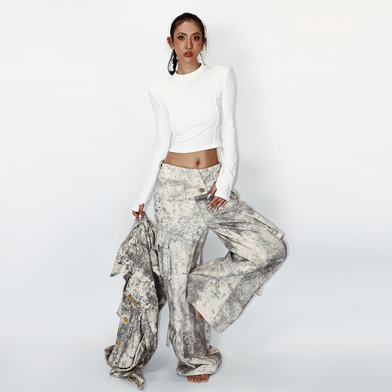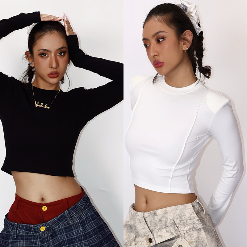 打底长袖 哟酷酷 鱼骨线百搭T恤女显瘦修身 美式 上衣女 人间朝暮