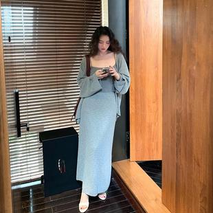 曲之遥 半裙针织套装 落肩袖 吊带背心 秋 外套 酒午自制新品