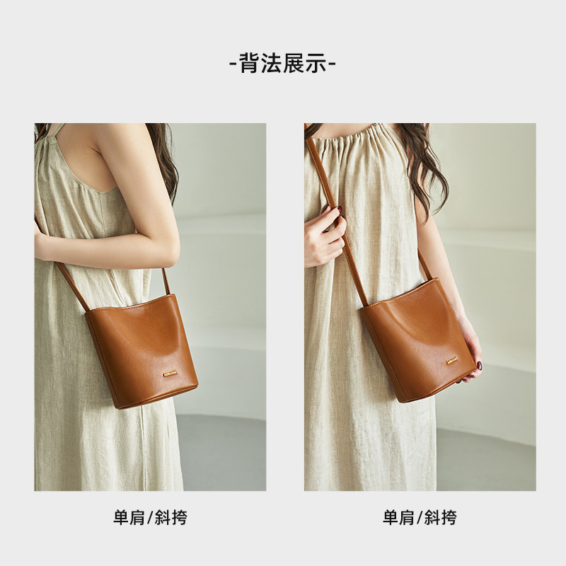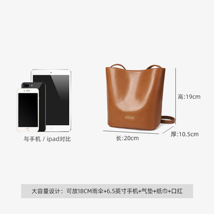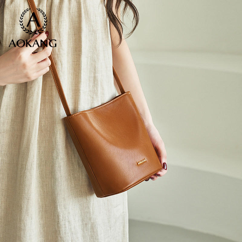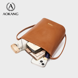 奥康水桶包2025新款 植鞣牛皮斜挎包大容量挎包2026单肩包 包包女款