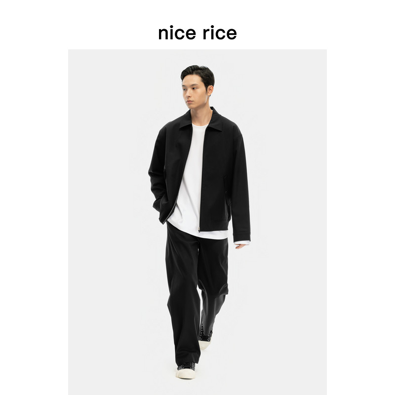 棉氨混纺挺括翻领拉链宽松休闲夹克NGQ06013 秋季 nice rice好饭