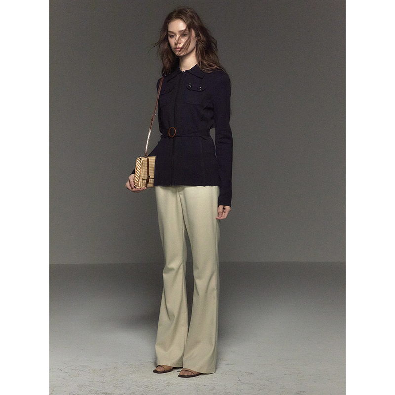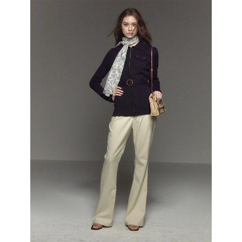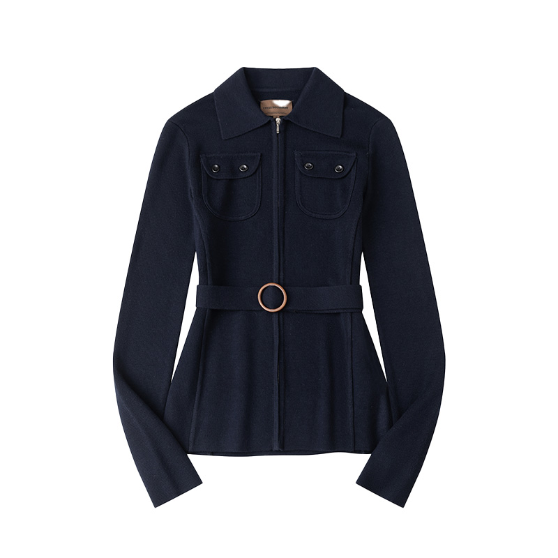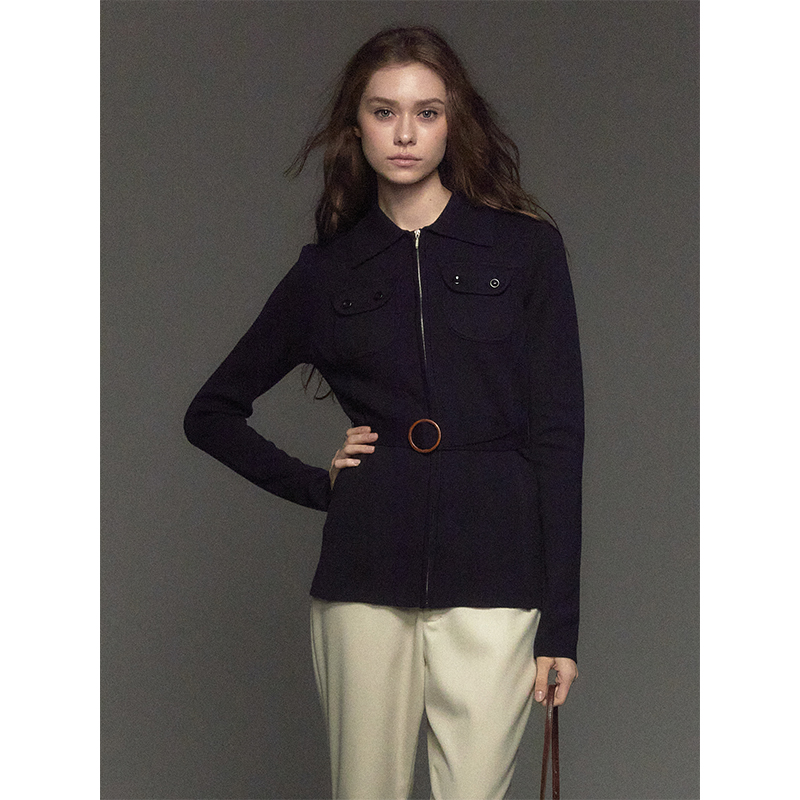 收腰翻领拉链开衫 复古修身 外套女 羊毛&桑蚕丝混纺 CycleDocument