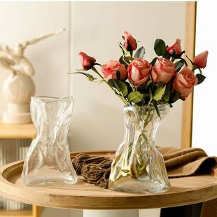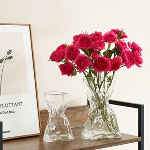 不规则玻璃花瓶透明水养鲜花客厅干花高级感ins风装 饰摆件台面