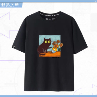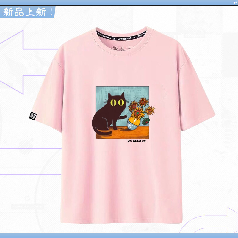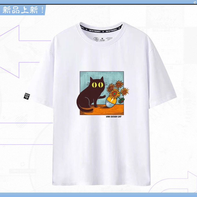 shirt搞笑梵高名画猫咪向日葵T恤短袖 Van Cat 宽松休闲LN Gogh