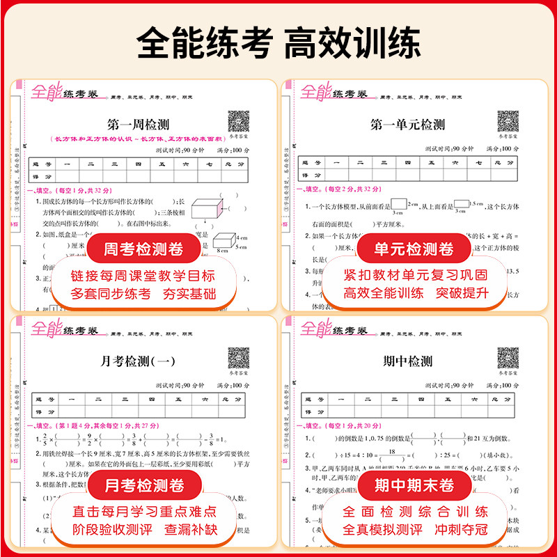 数学测试卷周练单元 数学试卷一二三四五六年级上下册数学同步测试卷江苏版 检测月考期中期末测试卷综合测试荣恒全能练考卷 版 苏教版