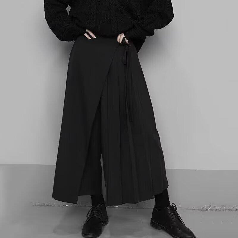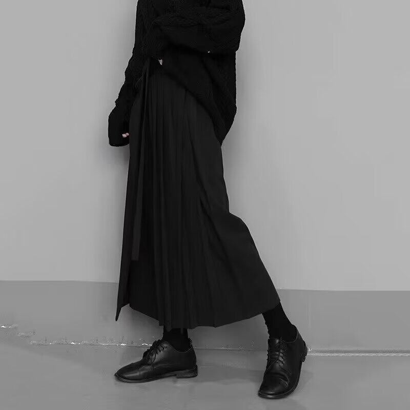 潮 酷飒叠穿八分西裤 山本风假两件不规则高腰裙裤 中性风飘带阔腿裤