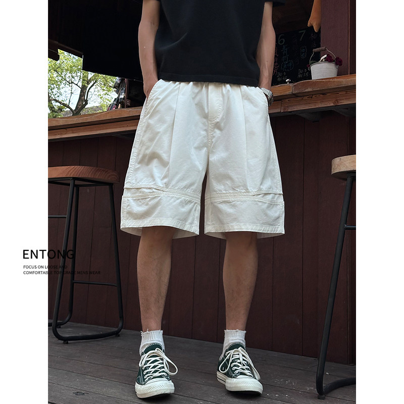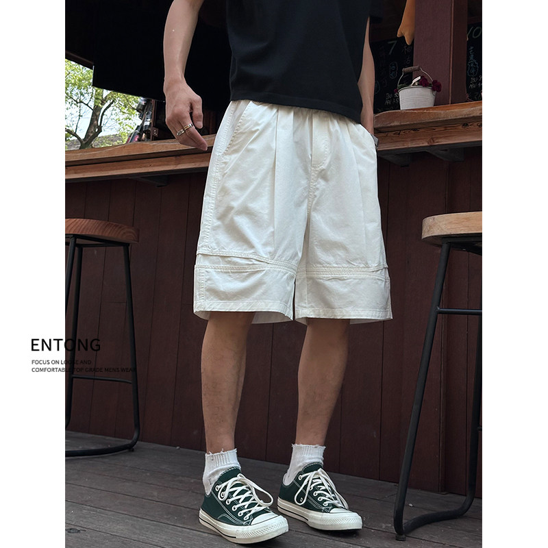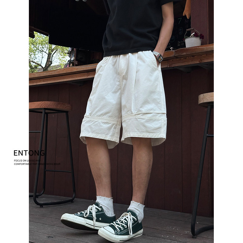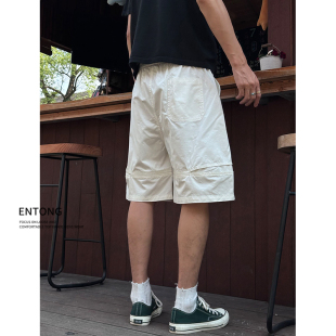 薄款 夏季 2025新款 美式 Entong潮牌白色短裤 街头宽松休闲五分裤 男款