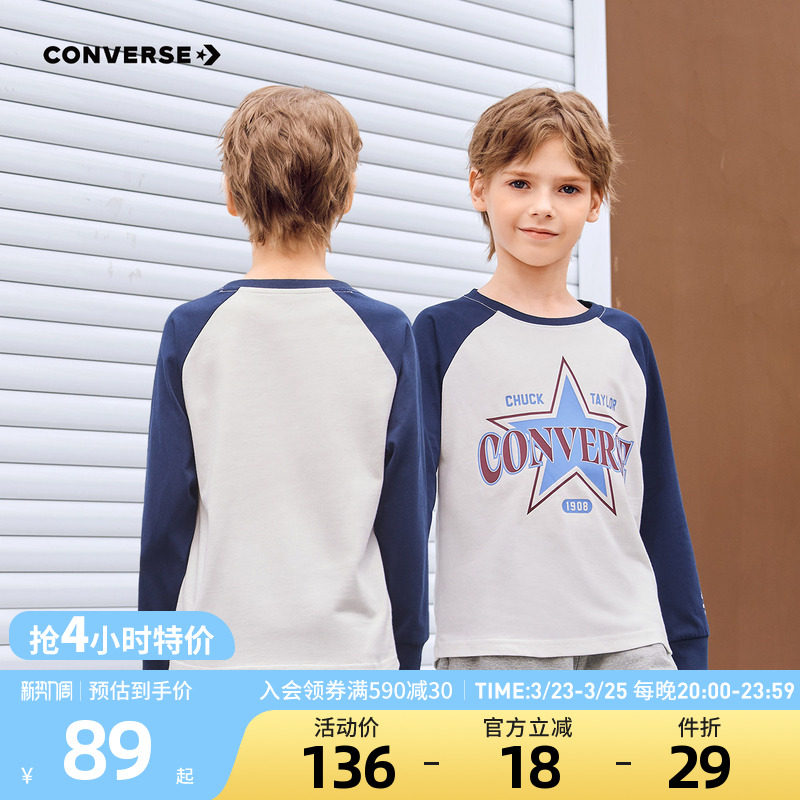 印花百搭中大童打底衫 匡威童装 插肩袖 T恤青少年春季 潮 男童长袖