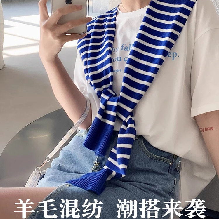 办公室空调房护颈小坎肩 女夏季 2026新款 春秋针织条纹披肩外搭薄款