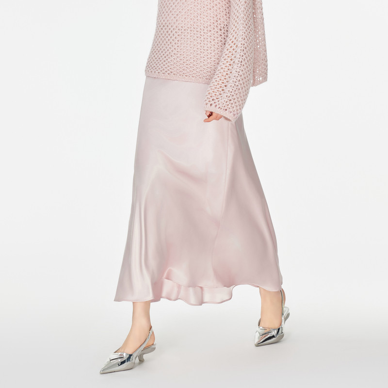 飘蕾醋纤缎面半身裙2026年春季 高腰显瘦A字垂感今年流行长裙 新款