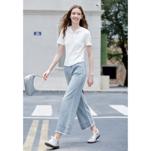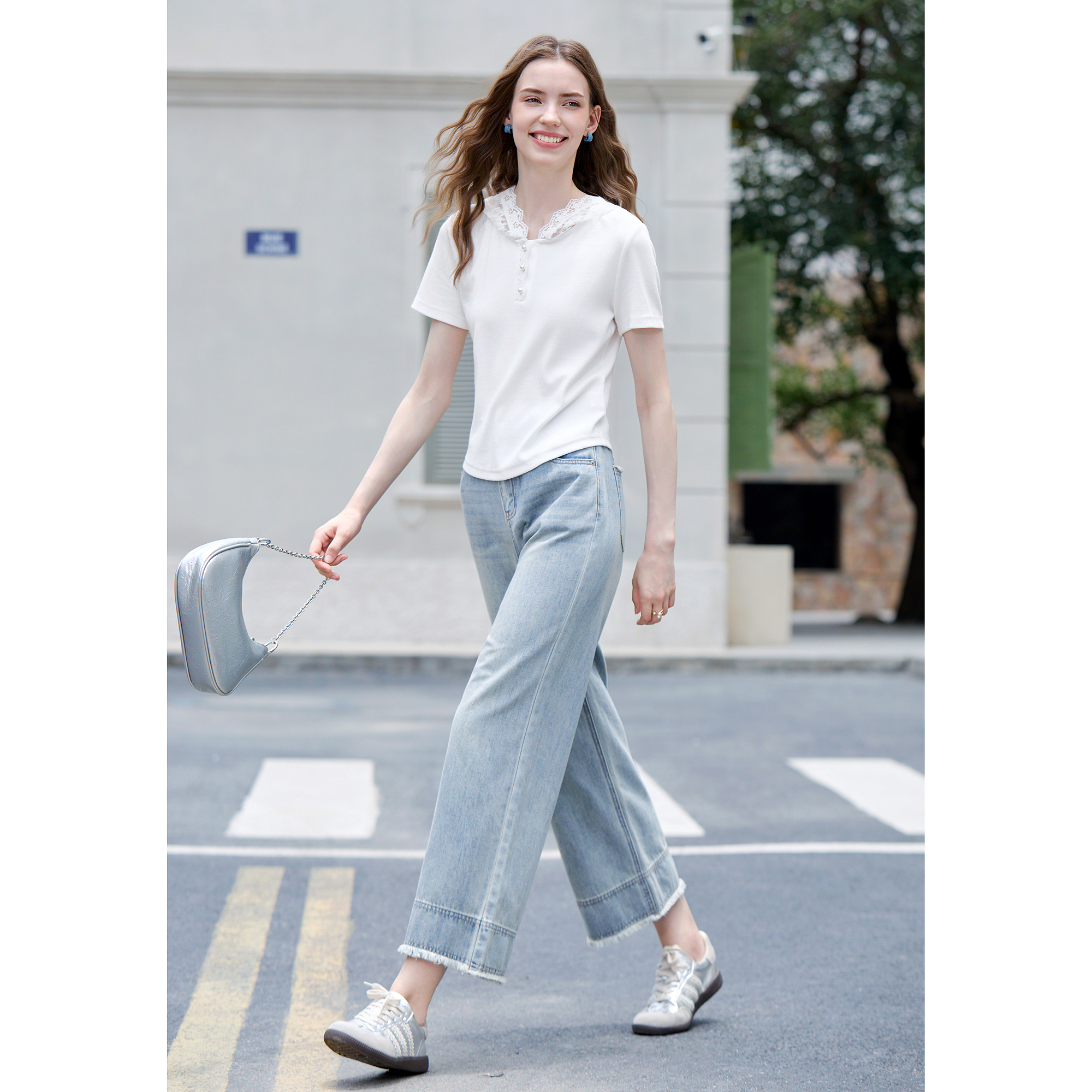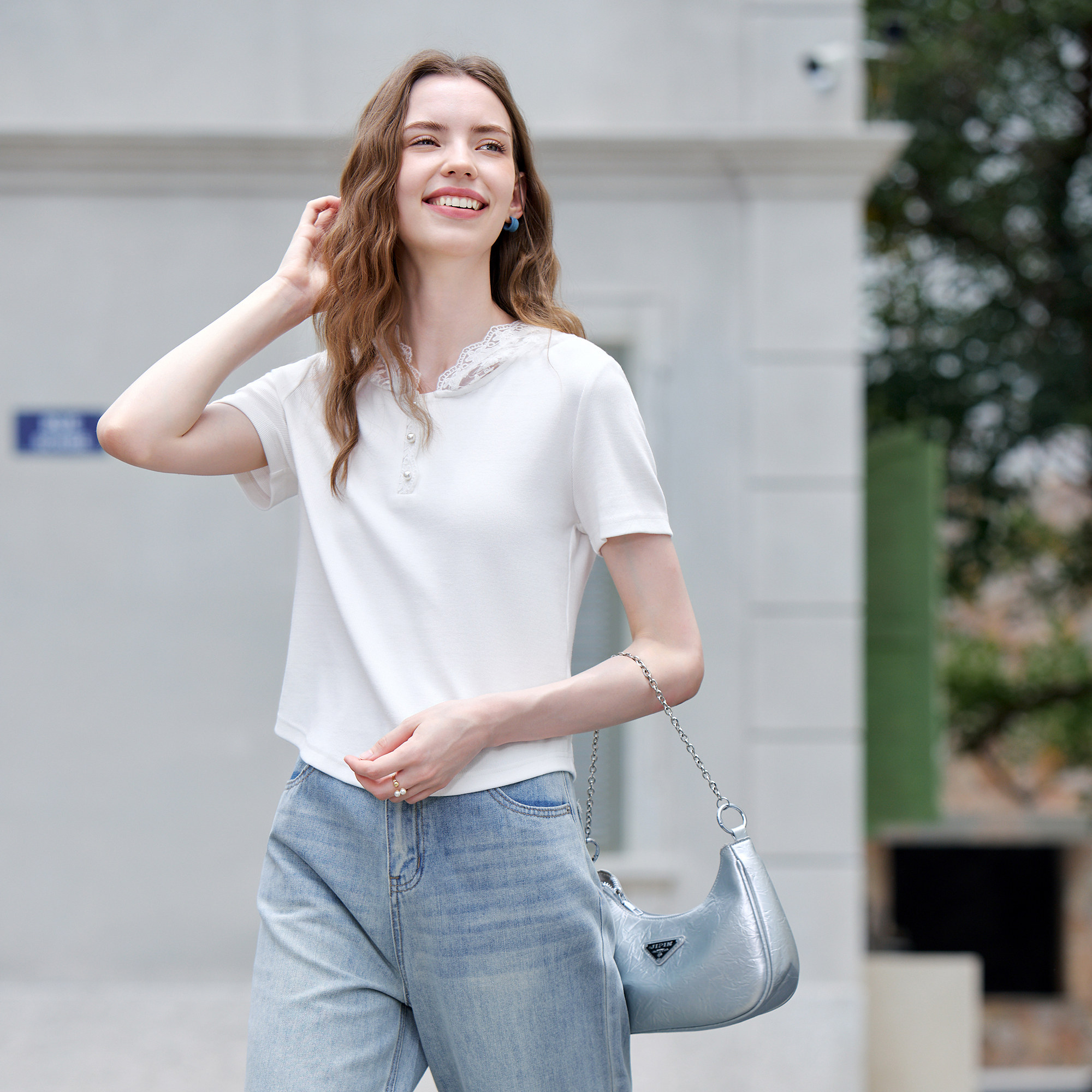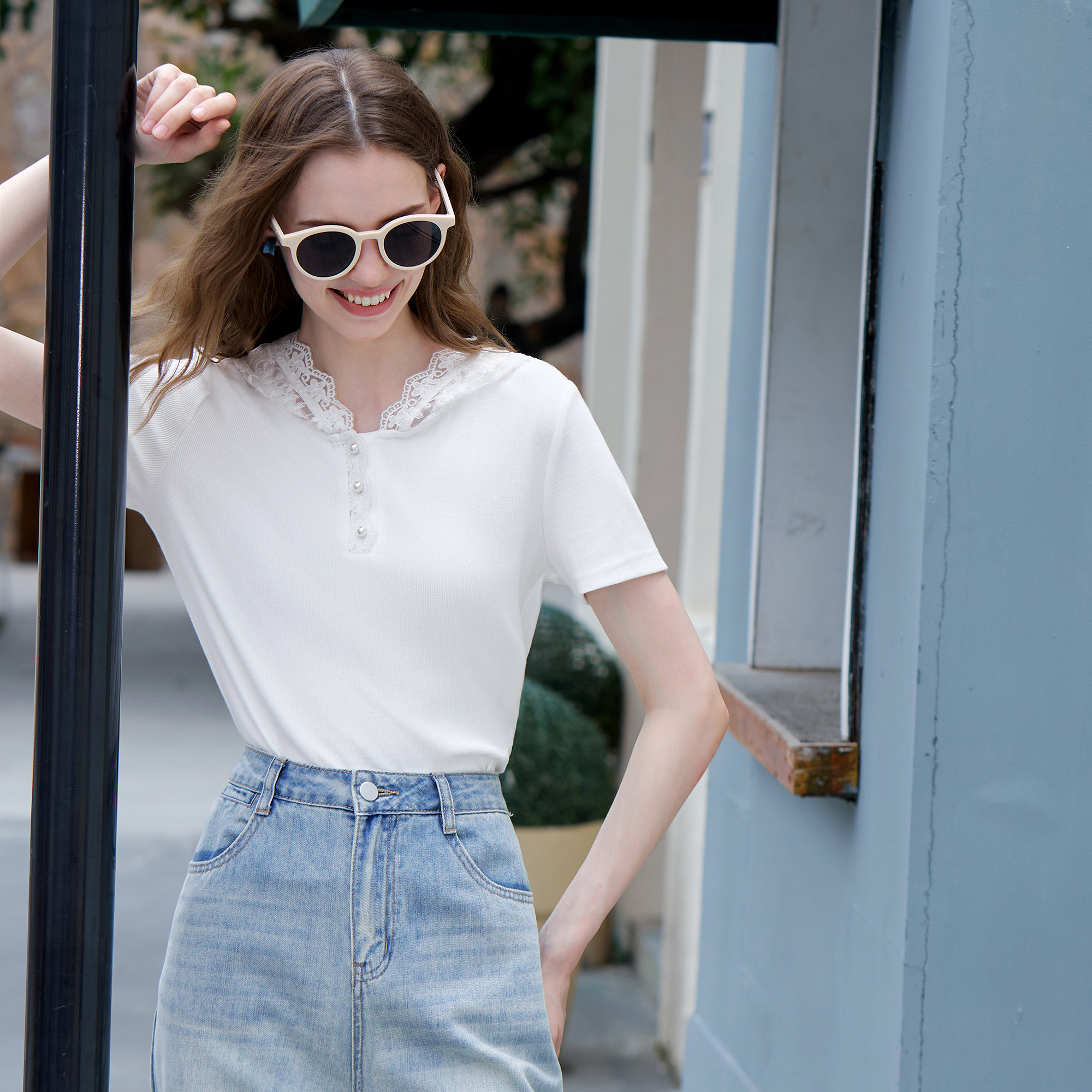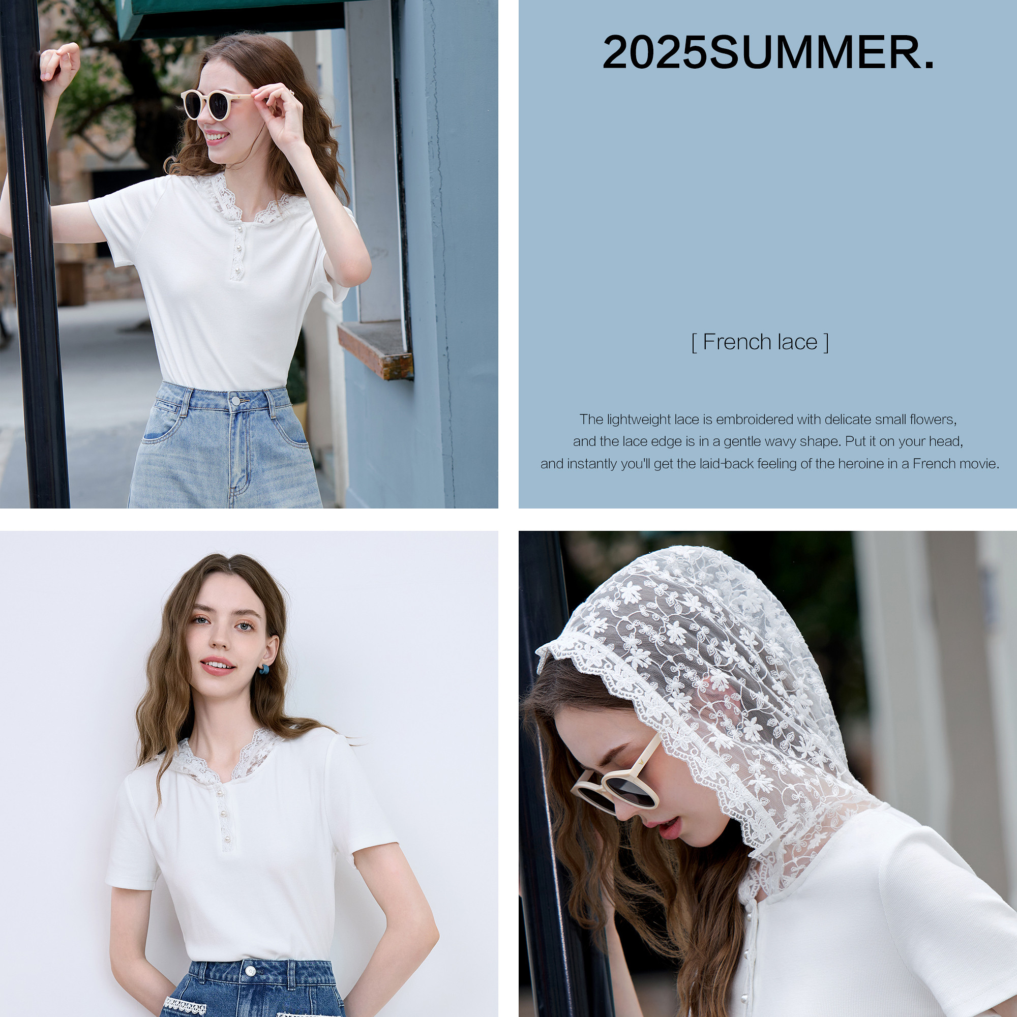上衣 白色小衫 betu百图南法假日风蕾丝连帽T恤女2025年夏季 新款