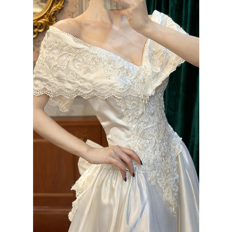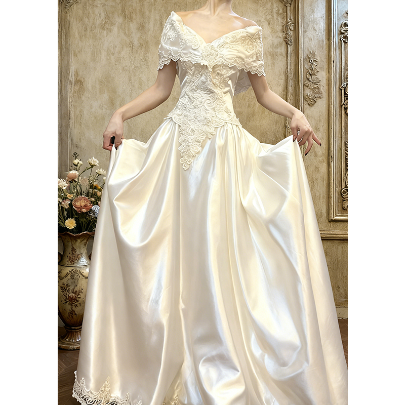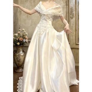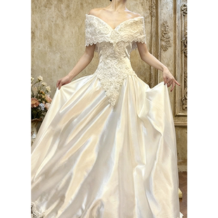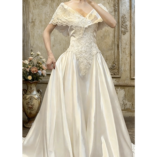 复古缎面高级感轻婚纱法式 小众轻奢新娘结婚迎宾纱出门纱礼服 新款