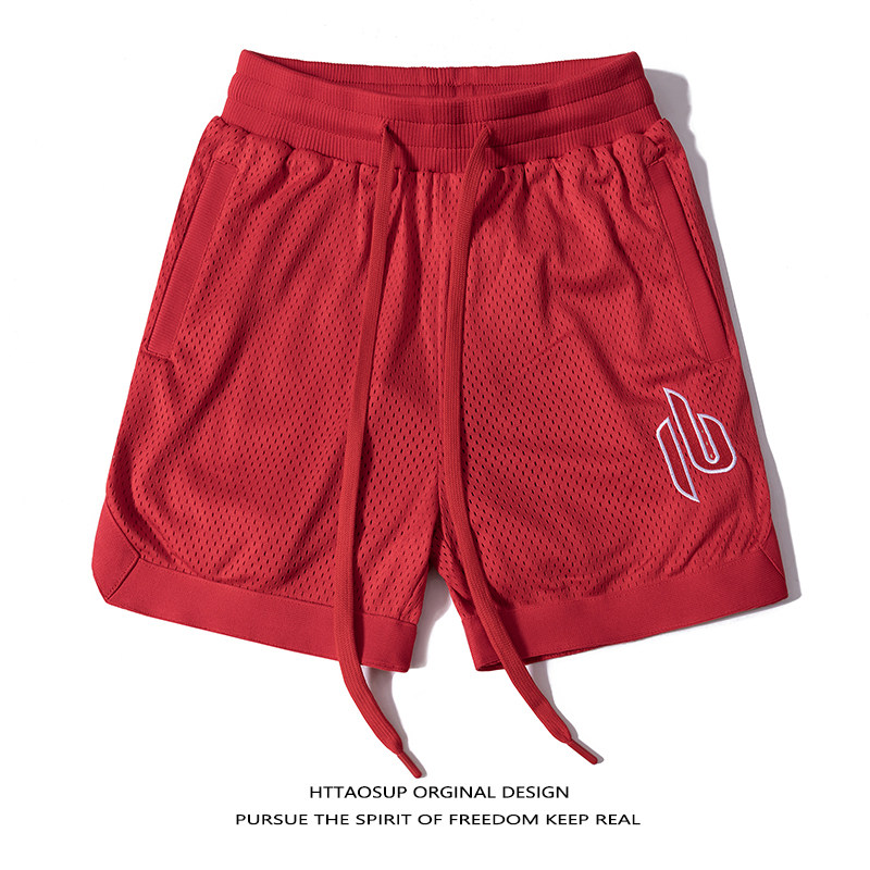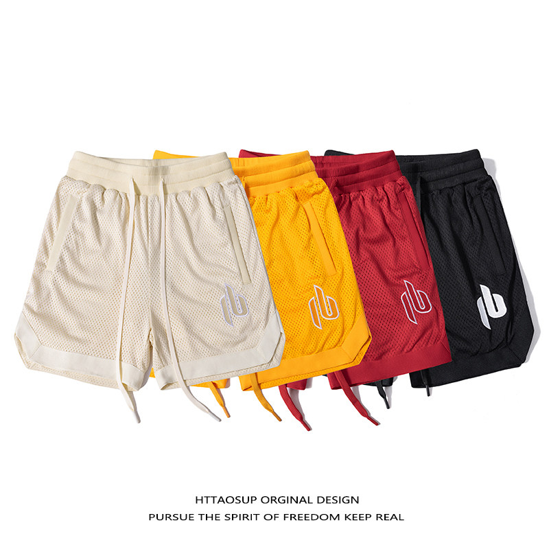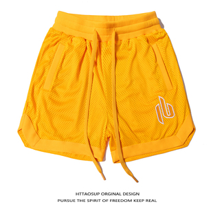 复古双层重磅宽松高街情侣运动裤 美式 子 网眼绣花短裤 HTTAOSUP夏季