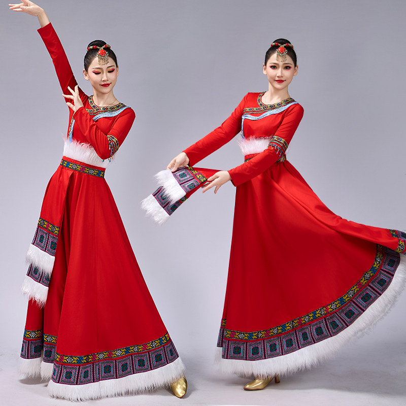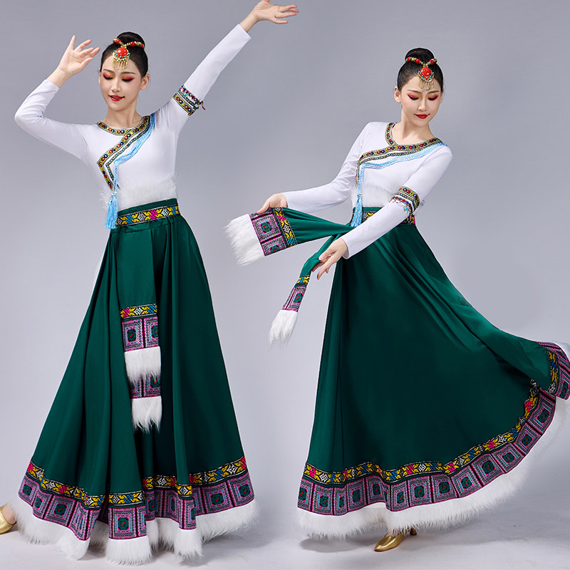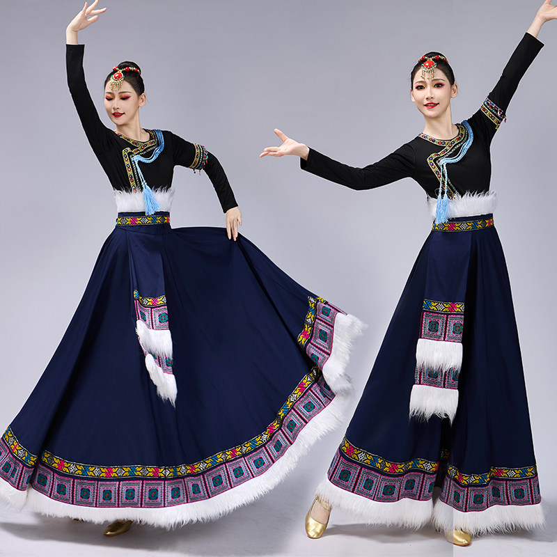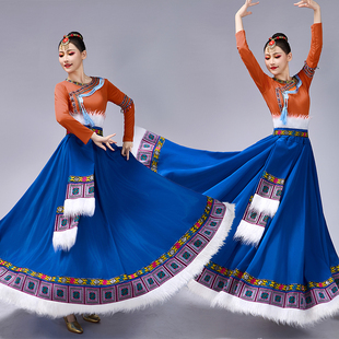 民族风成人舞蹈演出服套装 藏族舞蹈大摆裙新款 女少数民族艺考服装