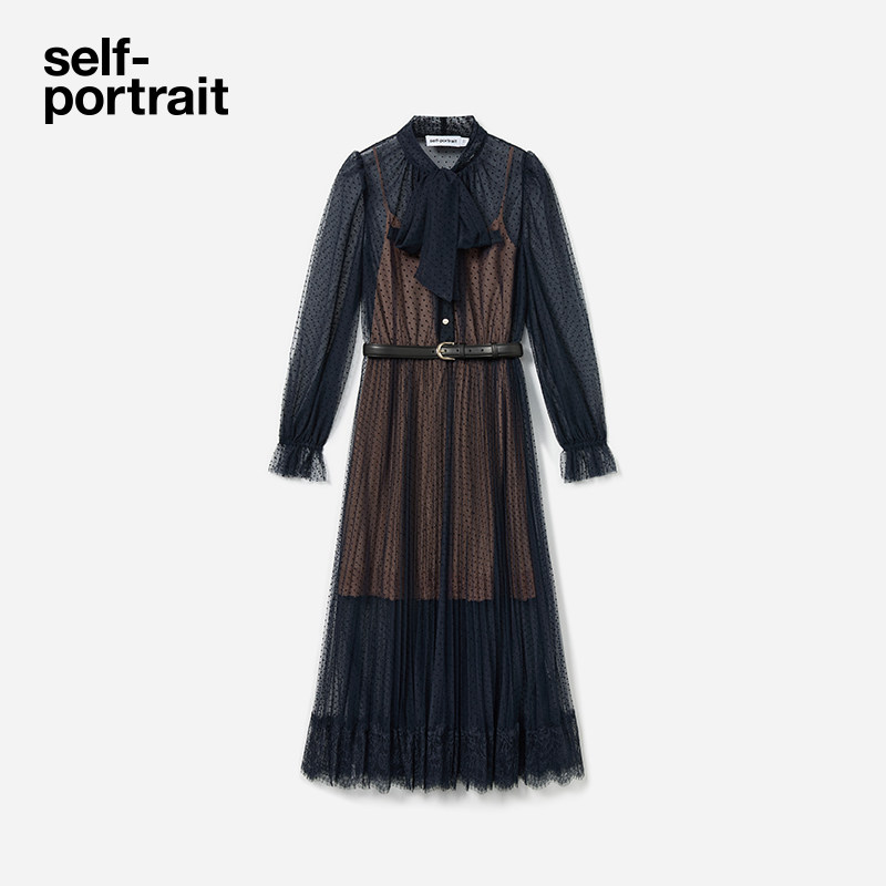 雪妮原创〈坠落夜天使〉重工蕾丝收腰连衣裙性感抹胸长裙多穿裙女