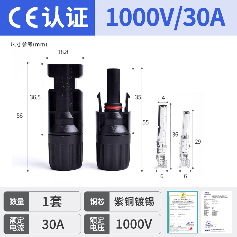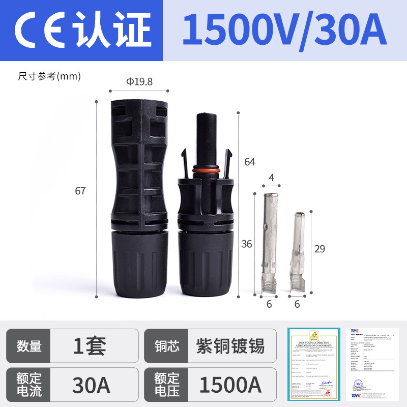 MC4 1000V 光伏连接器MC4太阳能板组件接头公母插头防水1500V 30A