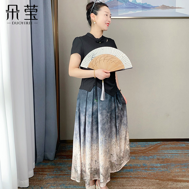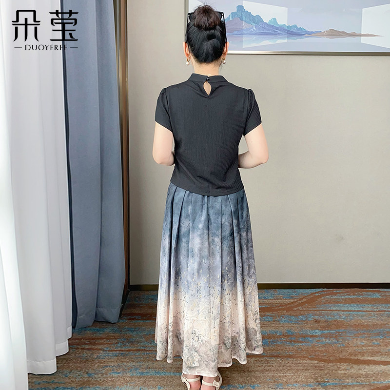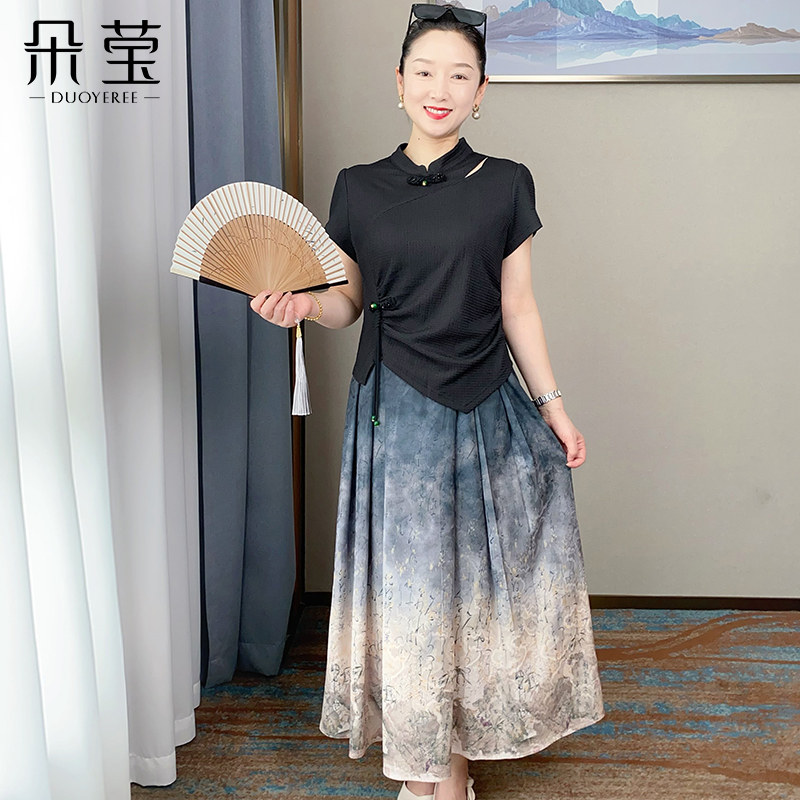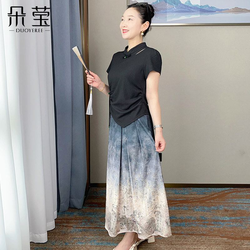 T恤中老年时尚 朵莹妈妈夏装 短袖 裙子中年女洋气新中式 两件套 套装