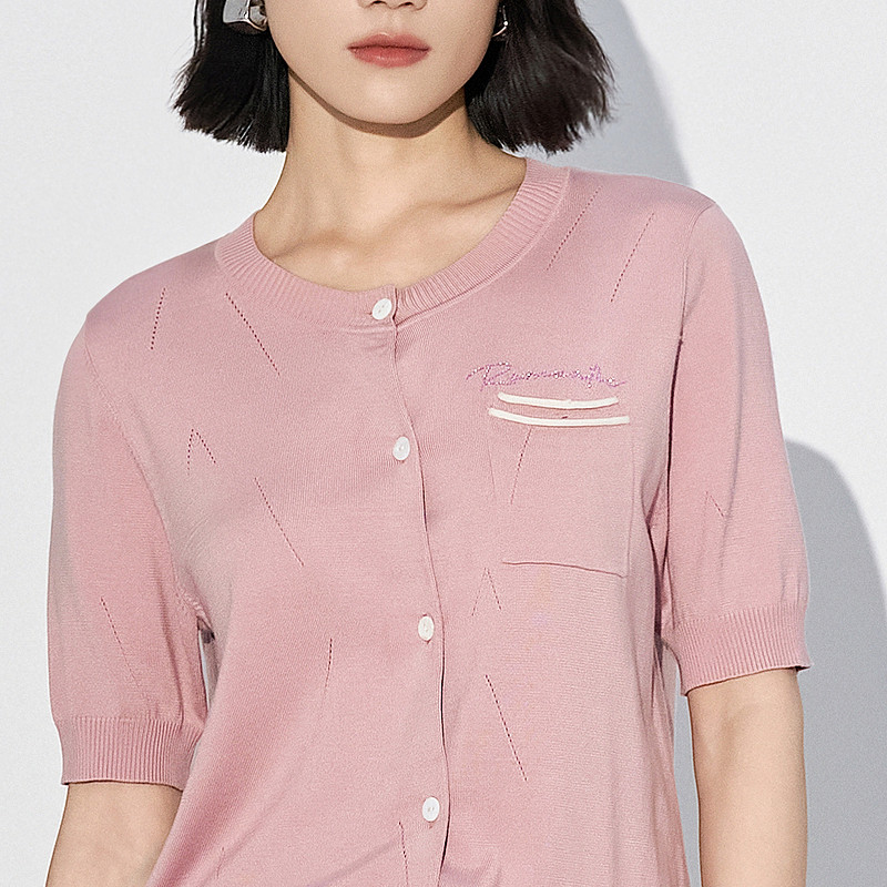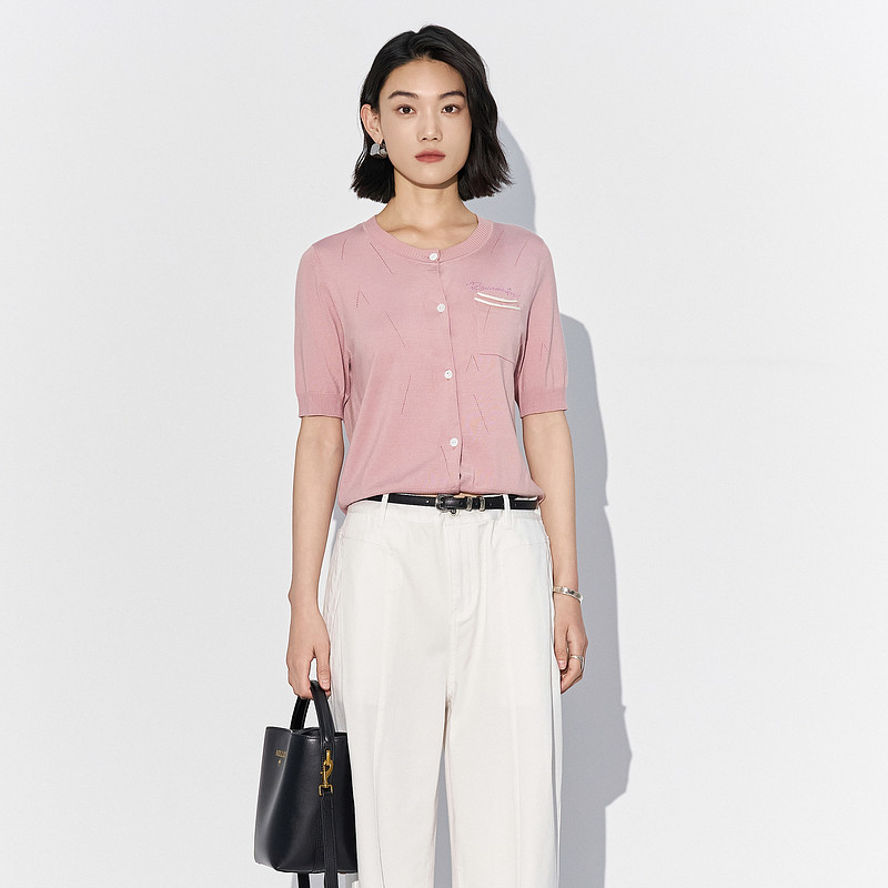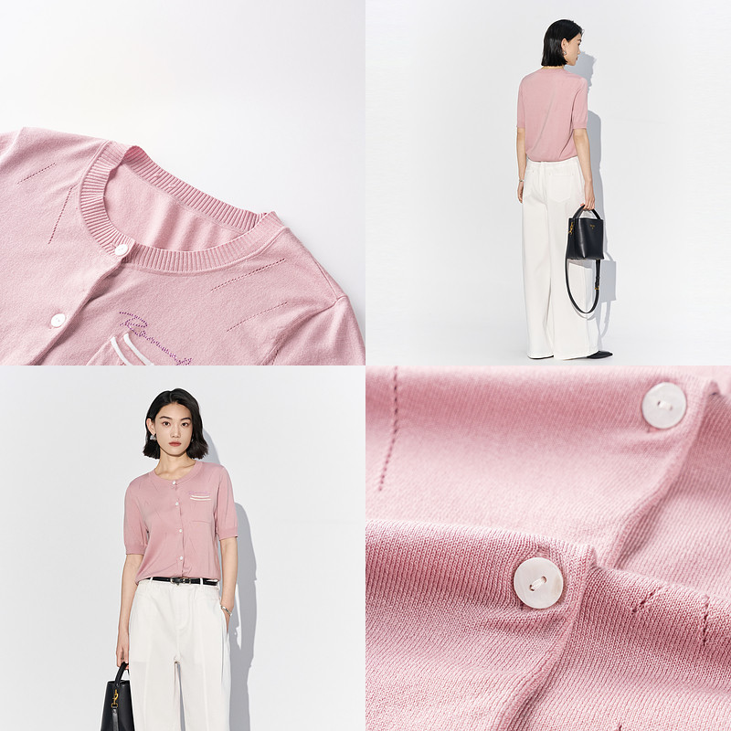 新款 2025夏季 毛针织衫 莱赛尔上衣女 雪歌XL211536A816粉色短袖