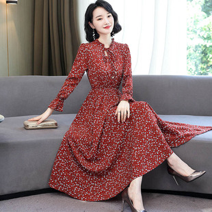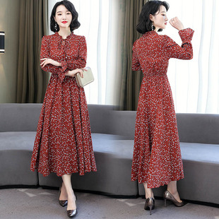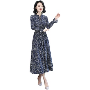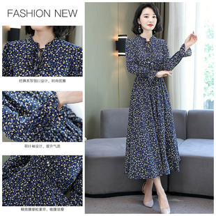 长款 碎花雪纺连衣裙女春秋长袖 显瘦气质大码 修身 印花裙子 2025新款