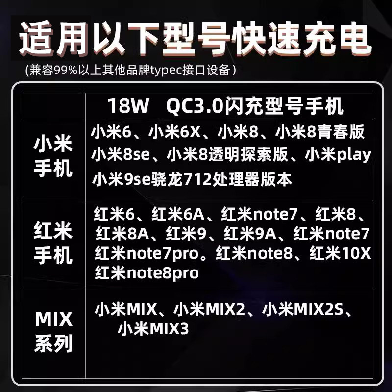 适用小米8充电器头数据线小米手机充电器note8pro快充插头18W适用小米8se闪充手机青春版 加长电源适配器2A