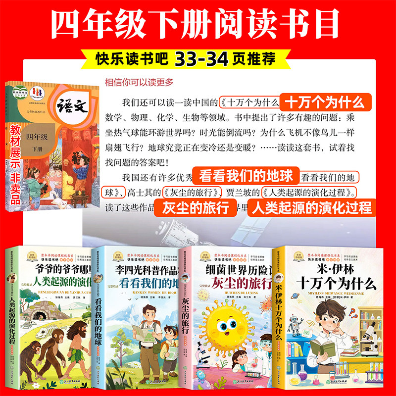 十万个为什么四年级下册阅读课外书必读正版 地球人类起源 书目四下快乐读书吧小学版 旅行看看我们 演化过程 米伊林灰尘 全套4册