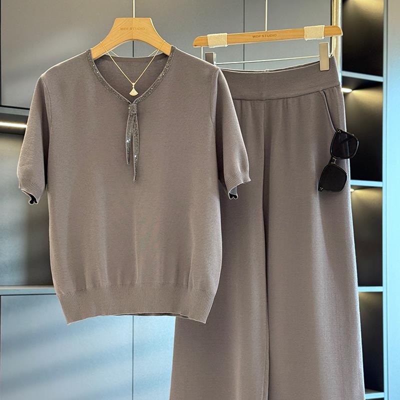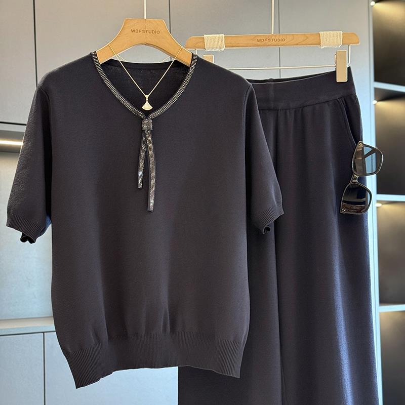 洋气妈妈装 新款 冰丝套装 夏装 气质百搭中老年针织两件套 女短袖 时尚