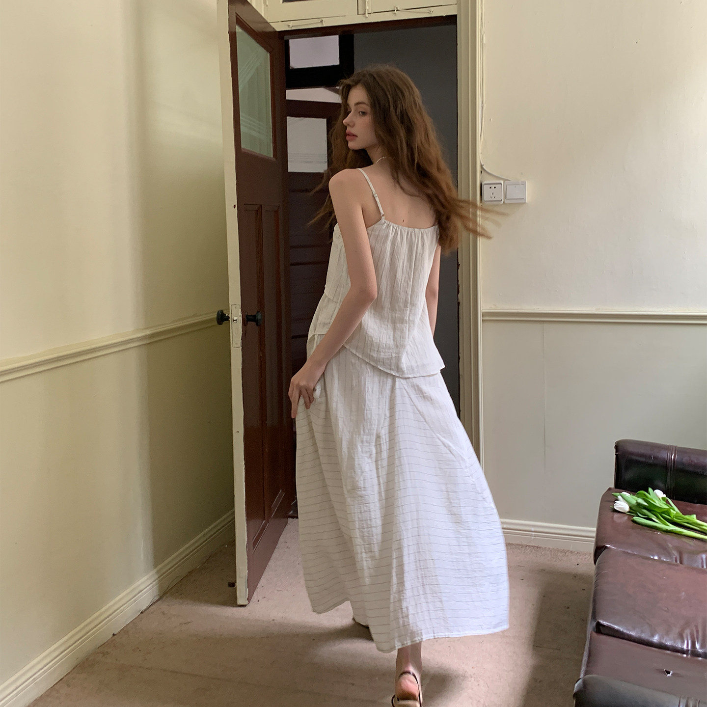 女夏半裙高级感简约设计感 镂空条纹背心吊带套装 ZHUYIYI 新款
