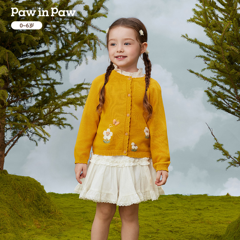 抗静电 女宝宝毛织开衫 PawinPaw卡通小熊童装 新款 外套 25年秋季