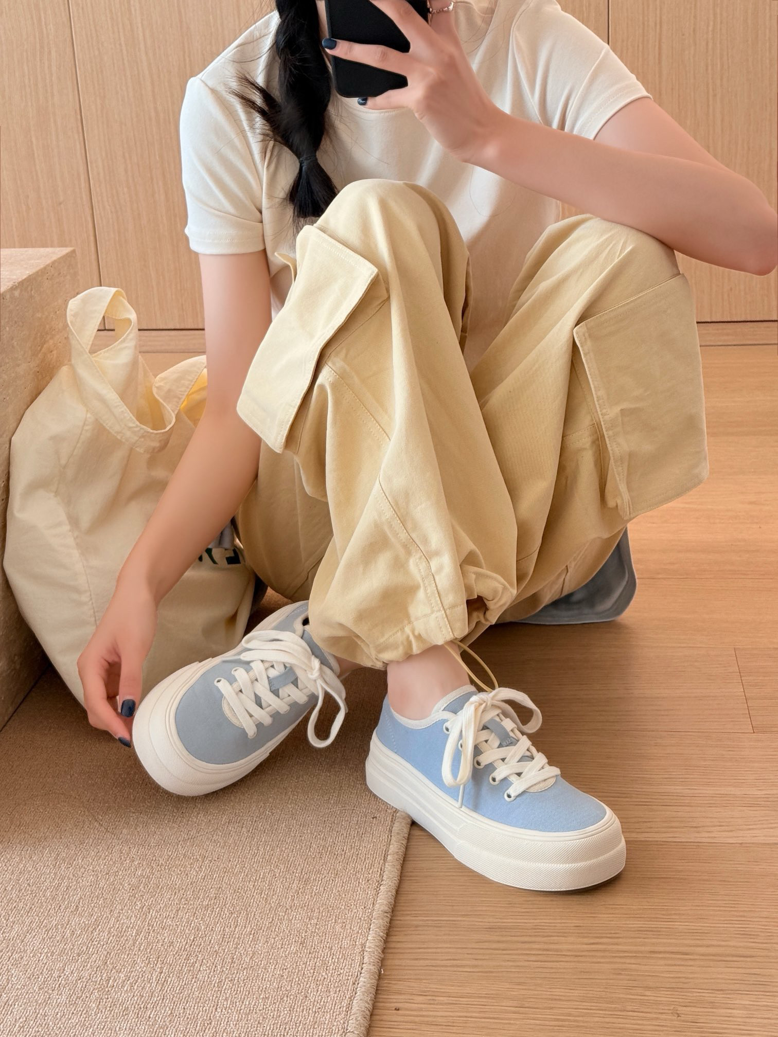 1752 软底透气简约舒适学院风潮鞋 夏季 女系带圆头帆布鞋 新品 6900