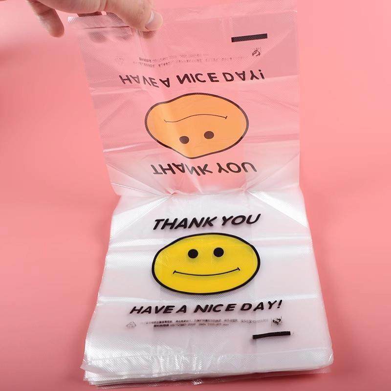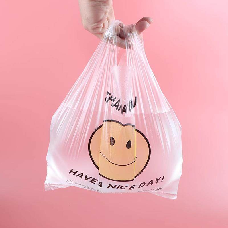 笑脸垃圾袋背心式 白色迷你桌面手提袋超小购物袋塑料袋透明袋子