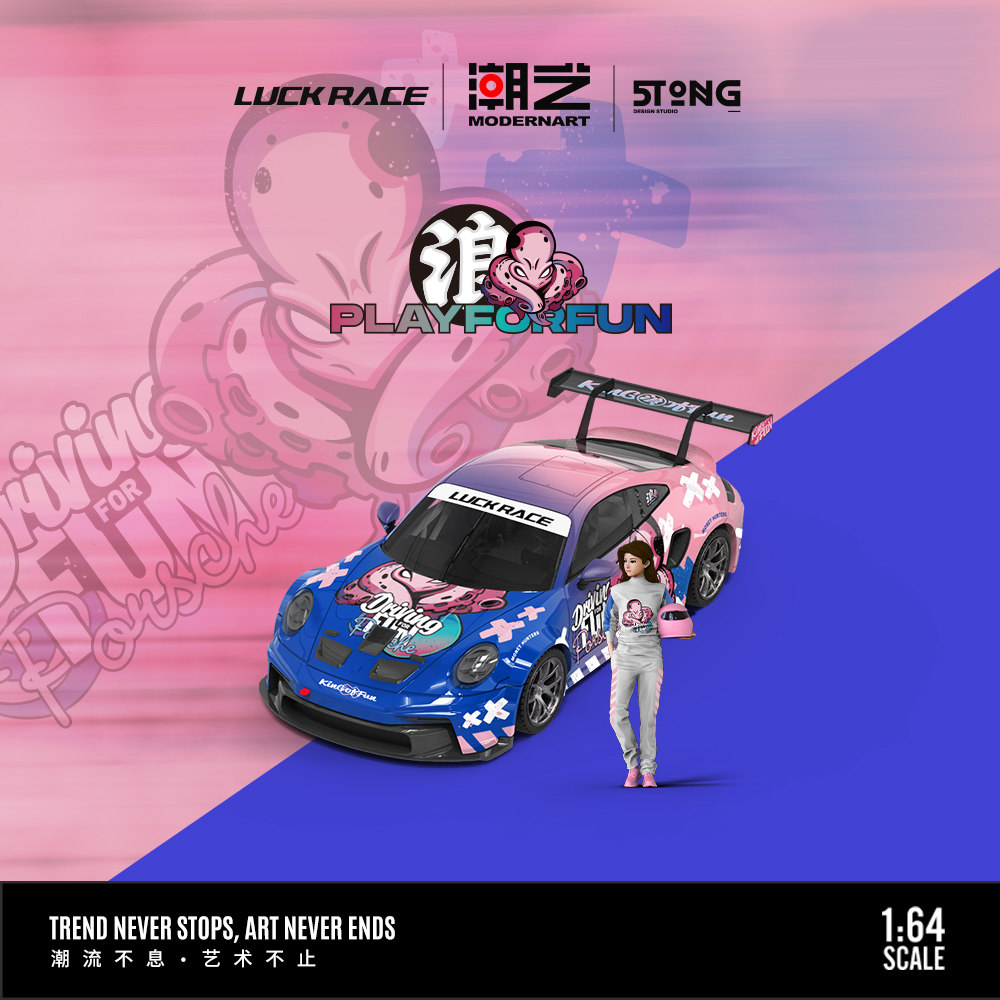 潮艺1 狂狼八爪鱼 GT3 仿真合金汽车模型 保时捷911 壹号站台