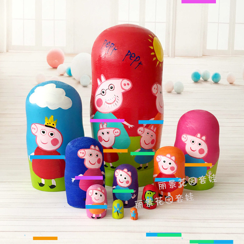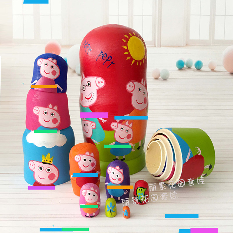 10层俄罗斯套娃娃玩具卡通手绘实木儿童益智礼品
