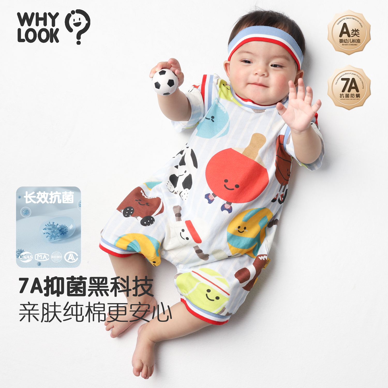 HM童装 圆领内着印花信封领棉质哈衣爬服1259195 男婴连身衣秋季