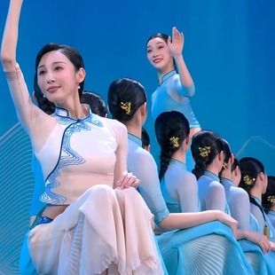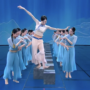 新款 春晚碇步桥舞蹈服演出服水清悠悠摇篮谣舞古典舞中国风民族服