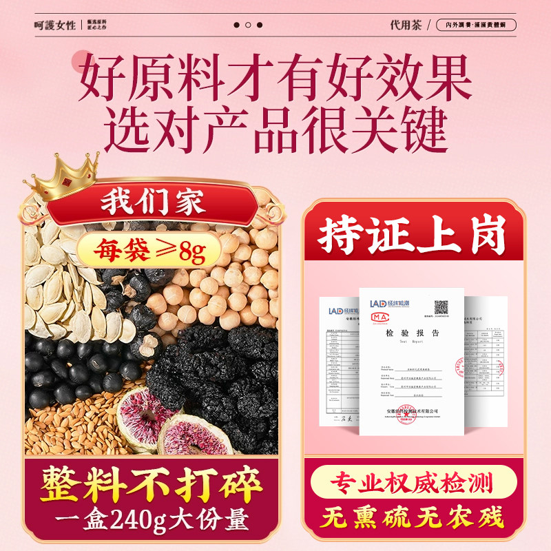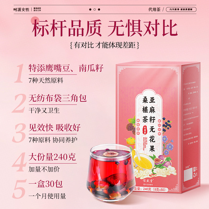 亚麻籽无花果黑豆枸杞桑葚种子循环补充生茶包黄体酮养生茶养雌茶