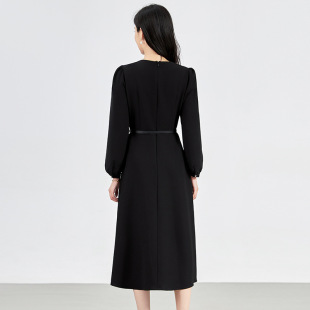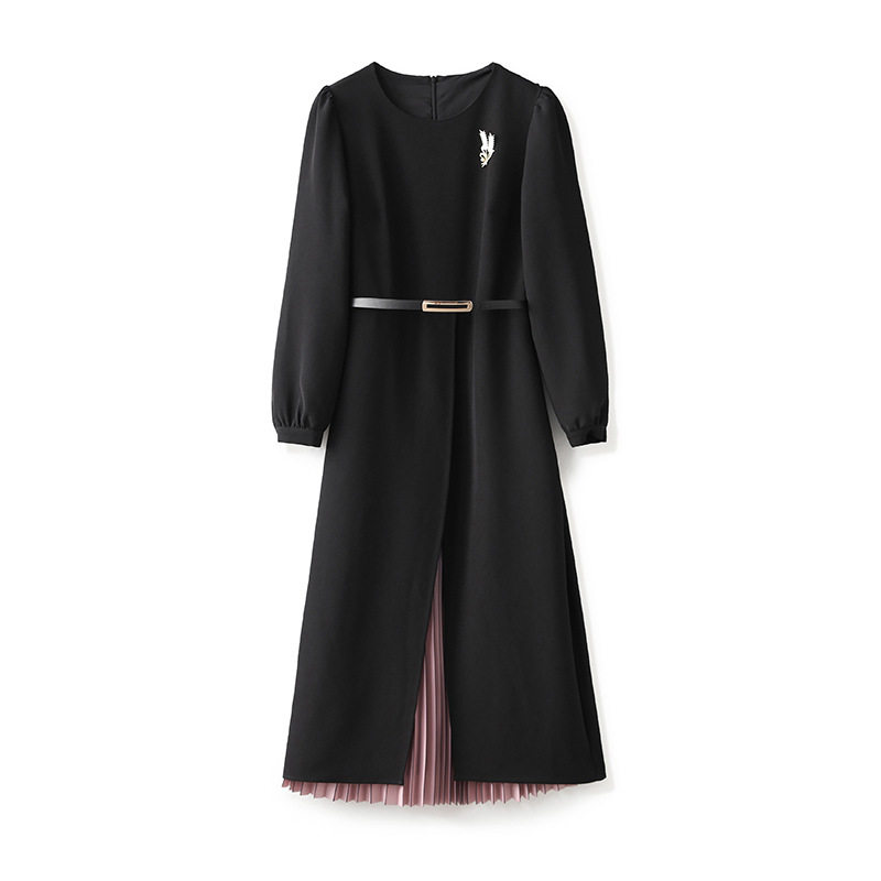 欧洲站2024秋新款 气质时髦显瘦连衣裙 重工精仿三醋酸渐变压褶法式