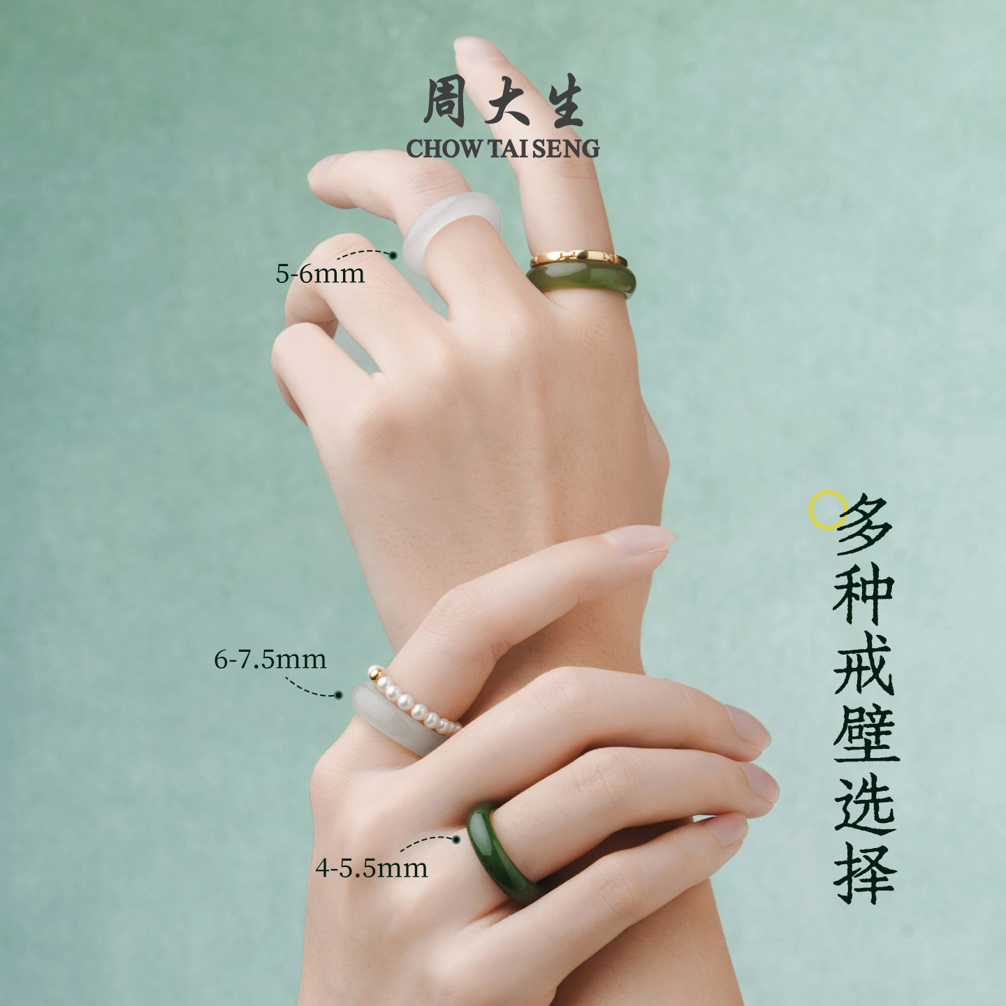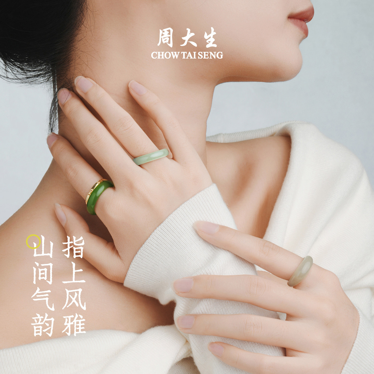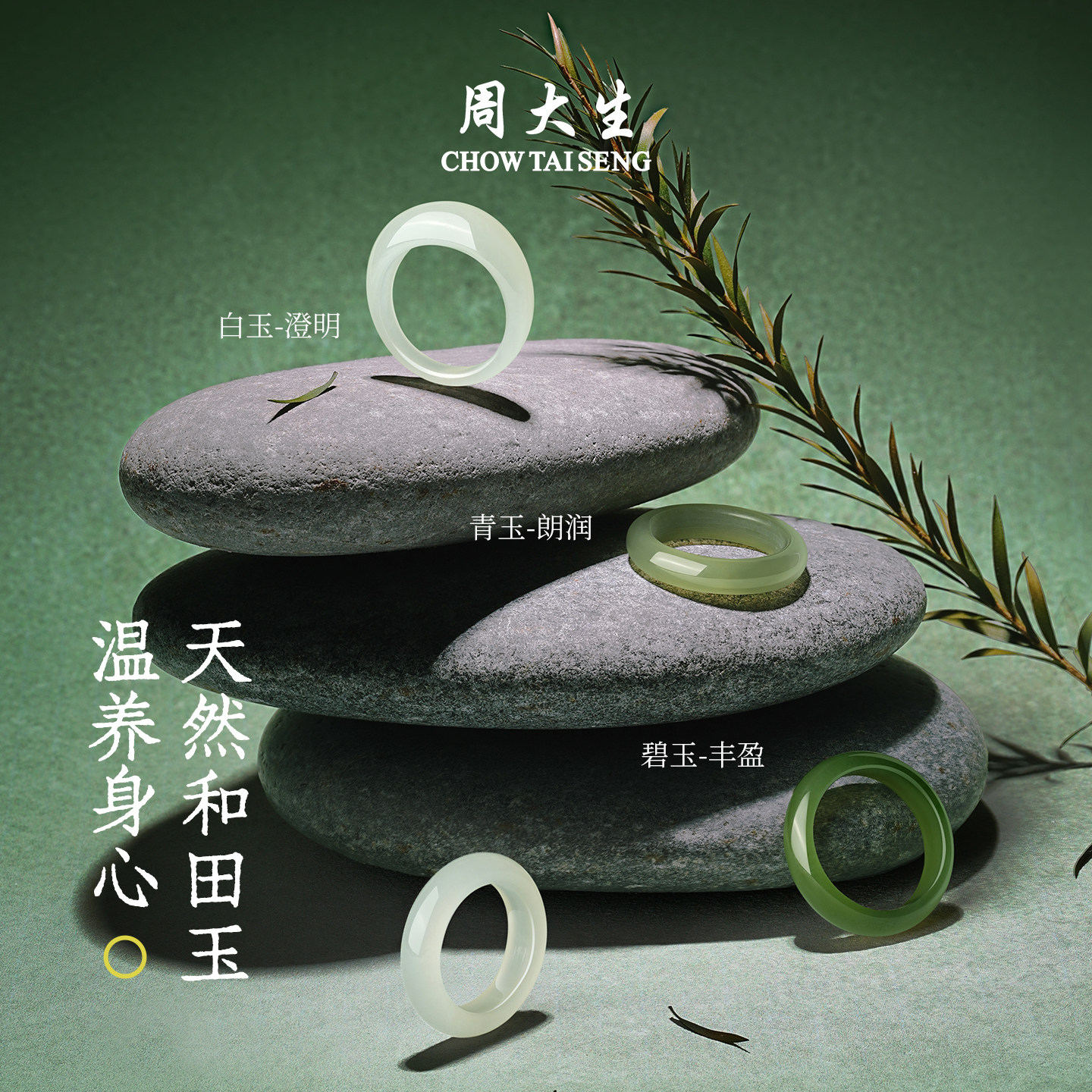 周大生和田玉戒指女碧玉青玉手饰玉石平安指环生日礼物送女朋友