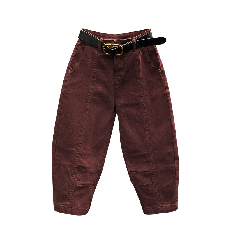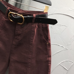 豹纹腰绳设计原色阔腿裤 快鱼加绒牛仔裤 个性 时尚 女2025年冬新款