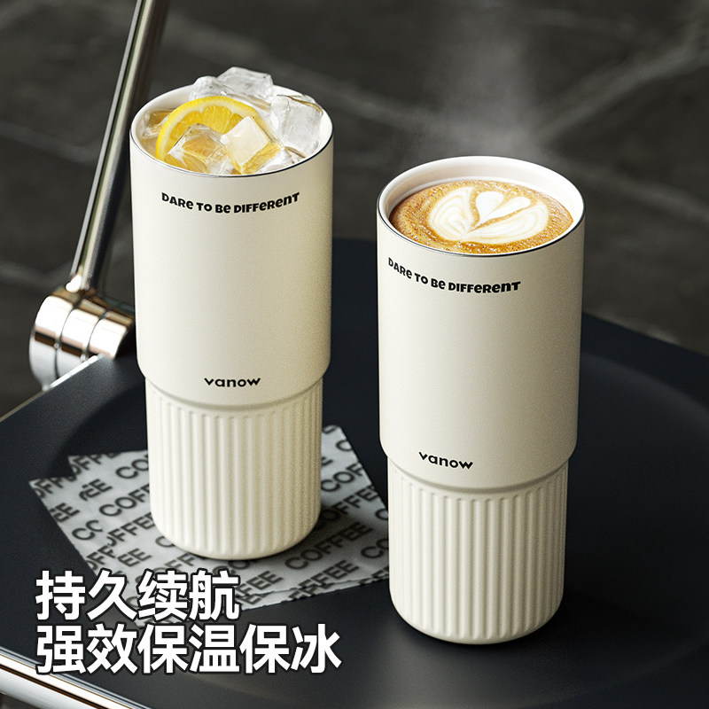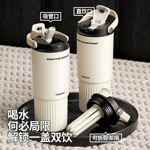 Vanow吸管保温杯陶瓷内胆男女生车载大容量咖啡水杯便携随行杯子